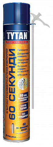 Титан 60 секунди е мултифункционално полиуретаново лепило с висока адхезия към много материали и основи. Уникалната формула, базирана на TYTACK технологията представлява бързо първоначално залепване, без пост експанзия, което осигурява стабилността на залепваните елементи и предотвратява деформации.