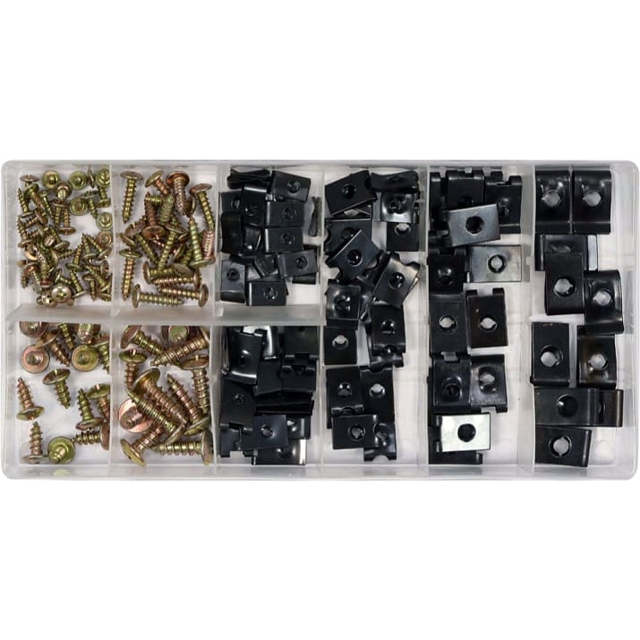 Комплект с богат набор от разнообразни и качествени метални щипки и винтове за кори, брони и други.