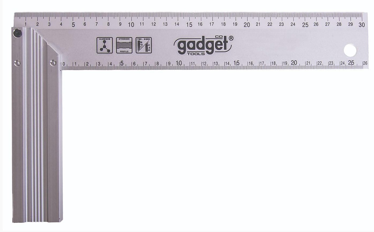 Прав ъгъл Gadget е с дължина 400 мм и широчина 210 мм. Има 4-странна измервателна скала. Използва се за проверка на прави ъгли, както и за нанасяне на маркировка по време на шлосерни и довършителни дейности. Изработен е от висококачествен алуминий. Притежава плътна дръжка с усилен профил.