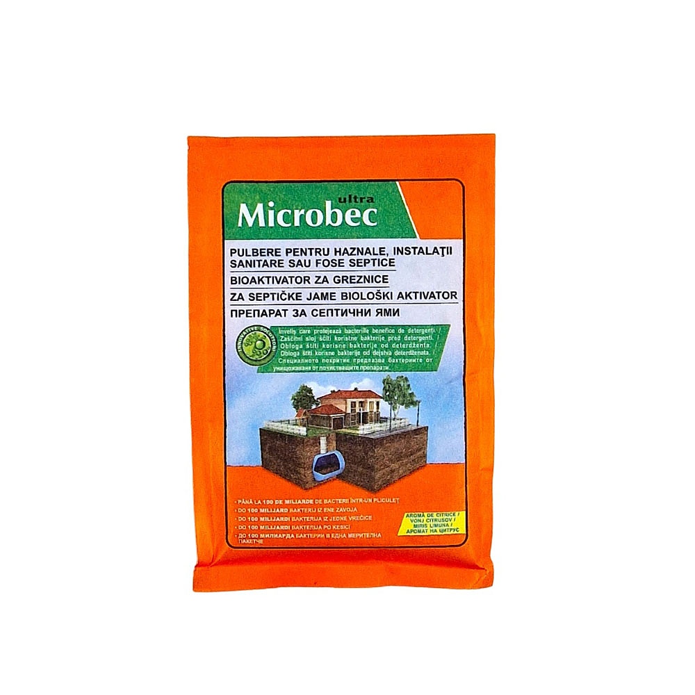 Microbec съдържа специализирани видове бактерии и ензими, които ускоряват естествения процес на разлагане на органичните отпадъци. Отпадъците, хартията, растителните отпадъци и мазнините подлежат на биодеградиране. 3-фазовото действие на Microbec осигурява бързо и успешно разделяне на замърсяванията, които първо са превръщани в течно състояние, а след това подлежат на ензиматично разлагане на абсолютно безопасни и благоприятни за околната среда прости елементи и вода. Това дава възможност за почистване на септичната яма от налепи и намалява честотата на изпразване на ямата. Използването на агресивни дезинфекционни средства, съдържащи хлор, антибиотици, а също и увеличаване на количеството на отпадните води може да намали ефективността на Microbec. За осигуряване на правилното действие на препарата се препоръчва увеличаване на поддържащата доза. Максимална ефективност на Microbec се постига чрез редовното му използване.
