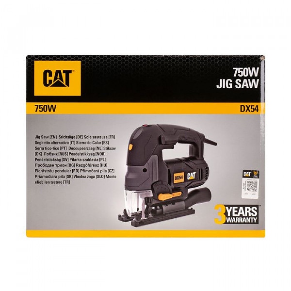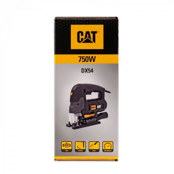 Електрически прободен трион CAT DX54 е с мощност 750 W. Честотата на ходовете е 800-3000 хода/мин, а ходът на ножа - 20 мм. Дълбочината на рязане в дърво е 80 мм, а в стомана - 10 мм. Зегето е оборудвано с LED осветление. Ножът се сменя бързо.