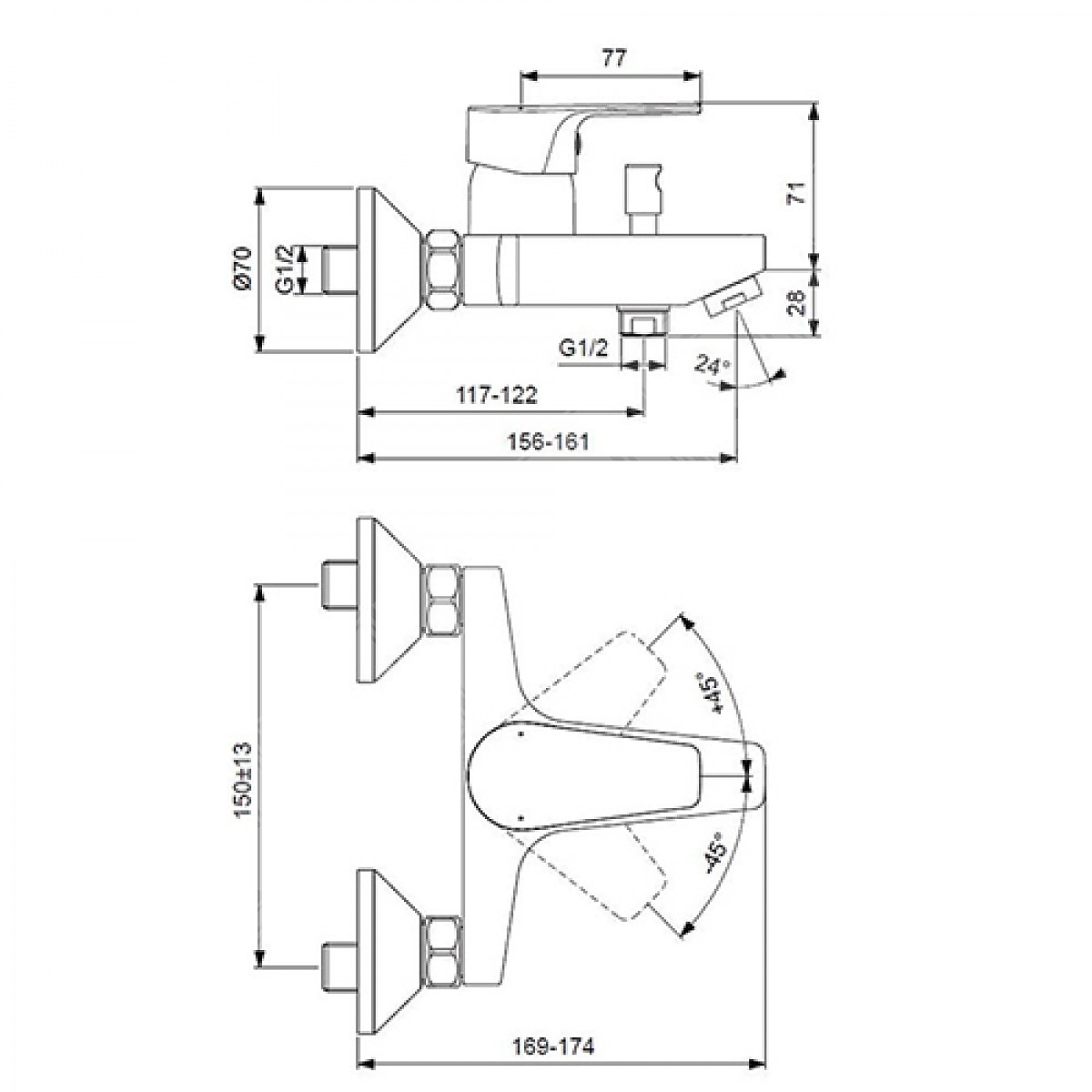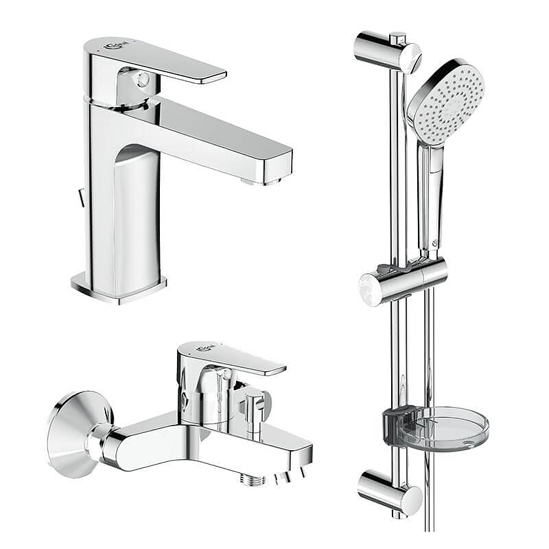 IDEAL STANDARD ESLA Комплект 3в1 смесител за мивка, за вана/душ и тръбно окачване с ръчен душ BC264AA.