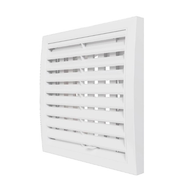 Правоъгълна решетка която може да се монтира по два начина : или самостоятелно с помоща на винтове или изполвайки фланеца да се присъедини към съответният диаметър въздуховод.В лицевата си част са разположени хоризонтални жалюзовидни пера.