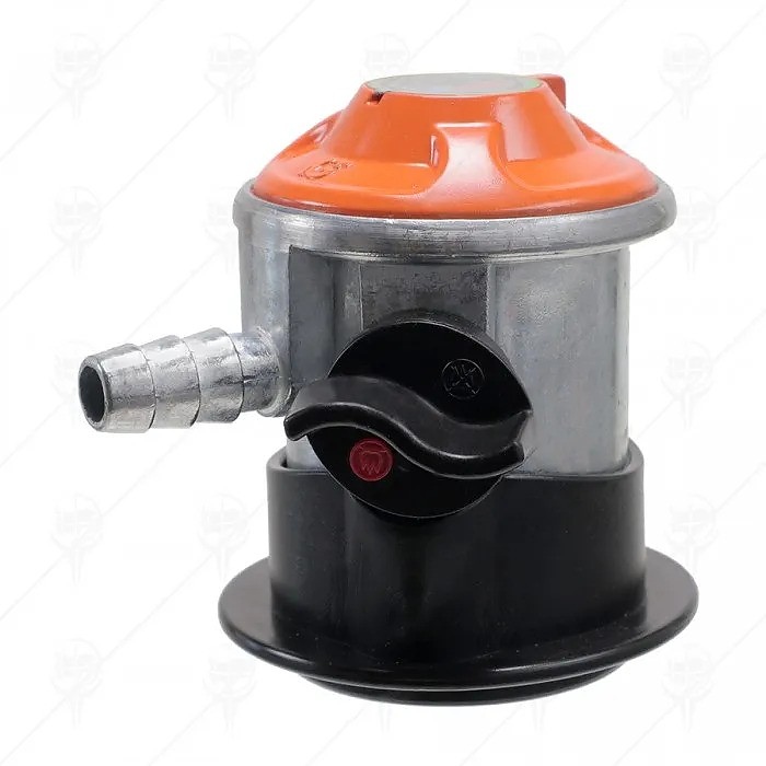 Редуцир вентил за ниско налягане PREMIUM GAS Налягане: 28~30mbar Капацитет: 1.5кг/ч Използва се с маркуч ф10 Странично копче със заключване на ринга за зацепване