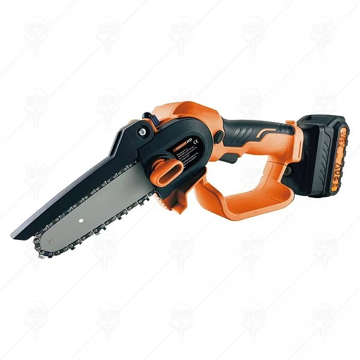 Многостранно приложима акумулаторна резачка за клони за подрязване на дървета и храсти, за надробяване на отрязан растителен материал и за строителство с дървесина.