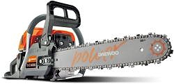 Бензинова резачка Daewoo DCS4516 45 CC 16" 1.7 kW 2.3 HP е мощна моторна резачка с дължина на шината 16" / 40 см. Оборудвана е с двутактов двигател с въздушно охлаждане, с обем 42.7 см³ и мощност 2.3 к. с. / 1.7 kW. Капацитетът на резервоара за гориво е 550 мл, а резервоарът за масло побира 260 мл. Силно препоръчително е да се избягва употребата на отработено двигателно масло. Машината се доставя в комплект с верига и шина, бутилка 600 мл за дозиране, монтажни инструменти, мерителна мензура, предпазител на шината, предпазни очила и ръкавици за безопастна работа.