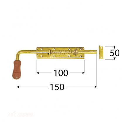 Резе с пружина и дървена дръжка за порти WSP 150. Размери 150*48 мм.