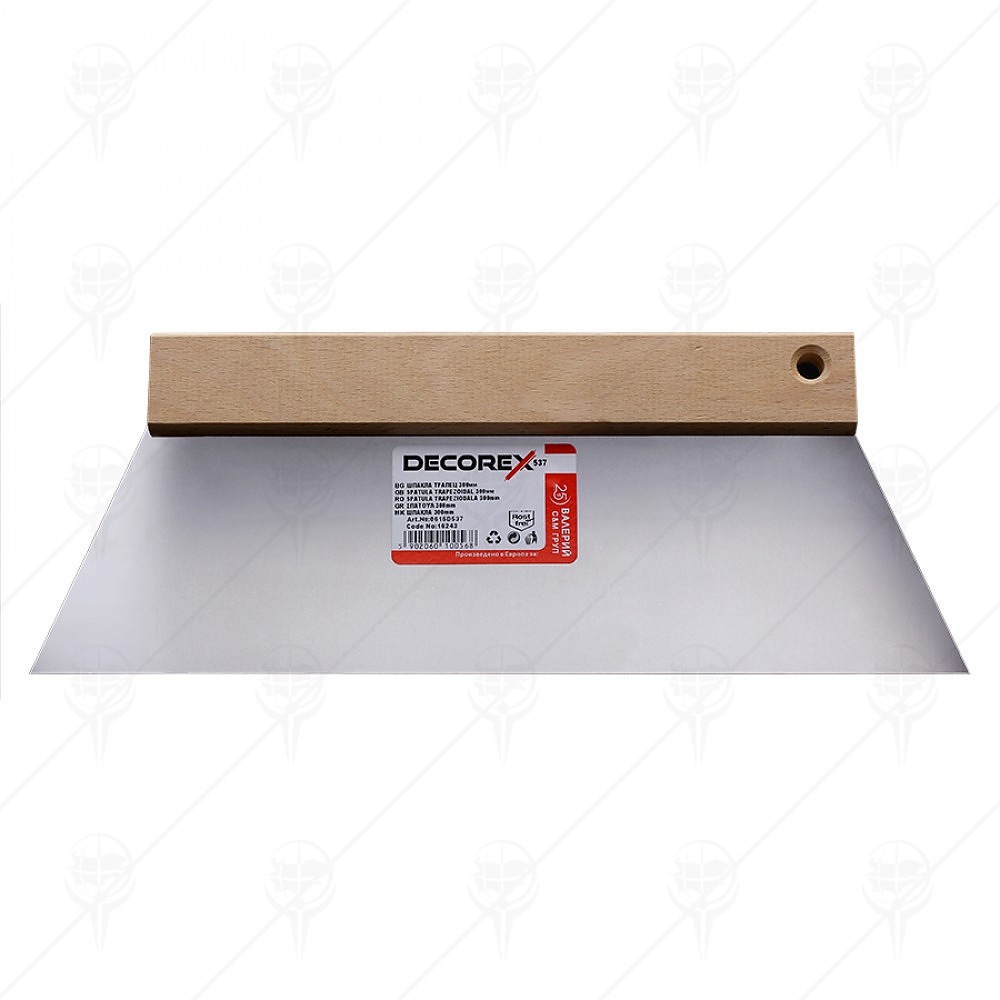 Шпакла трапец DECOREX е с ширина 300 мм с дървена дръжка, изработена от неръждаема стомана.