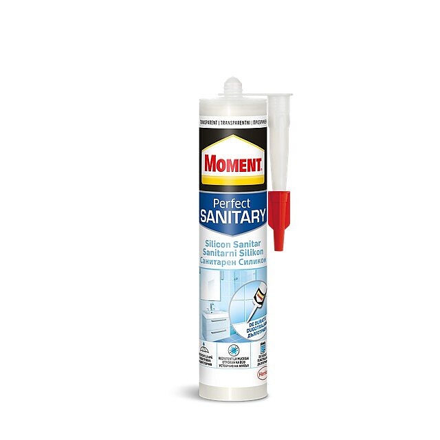 Moment Sanitary Silicone е силикон за запечатване на фуги в банята и кухнята (тип ацетокси).
