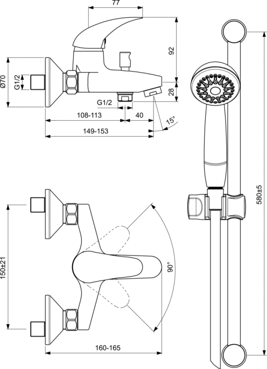 Смесител стенен за вана/душ с аксесоари