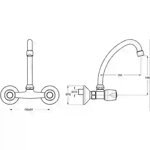 Въртящ се горен тръбен чучур J 150 mm.