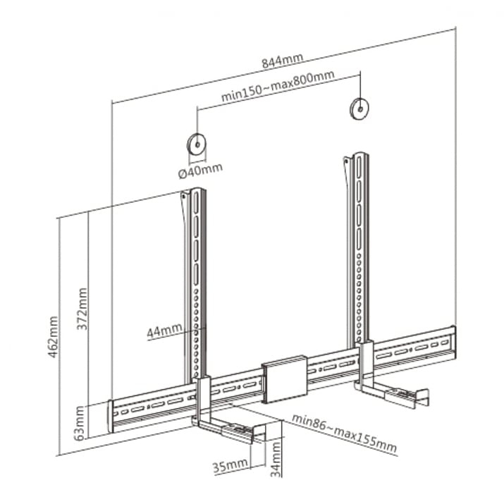 • Регулируема скоба, подходяща за саундбар в различни размери