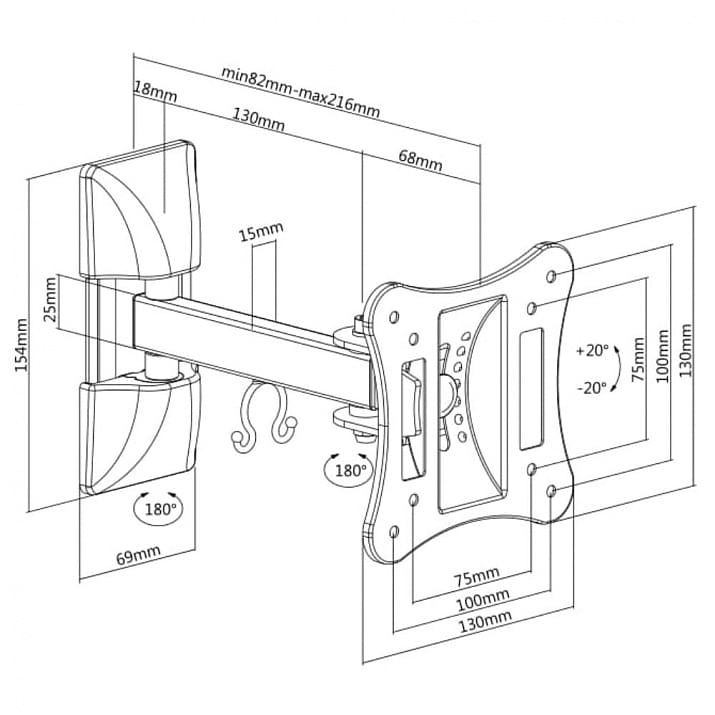 • Изтегляне до 216 мм от стената