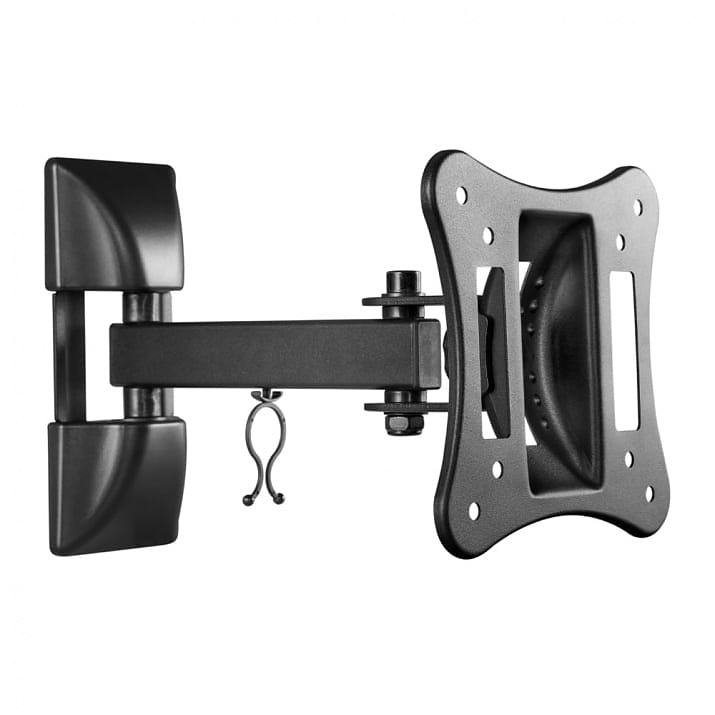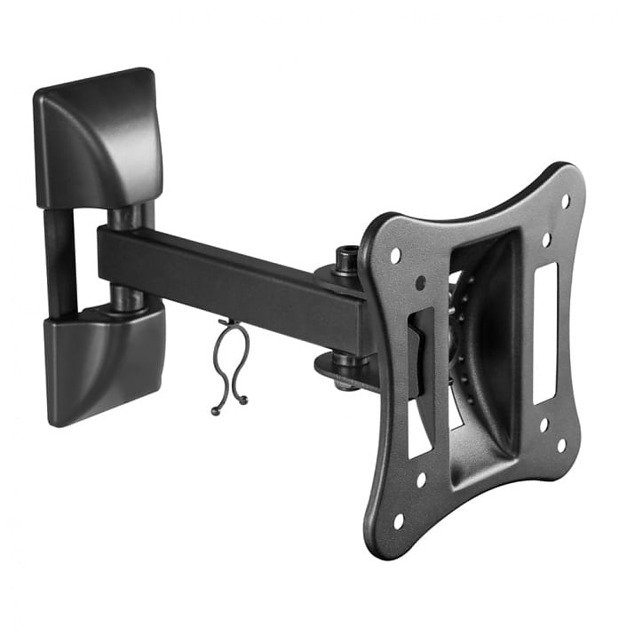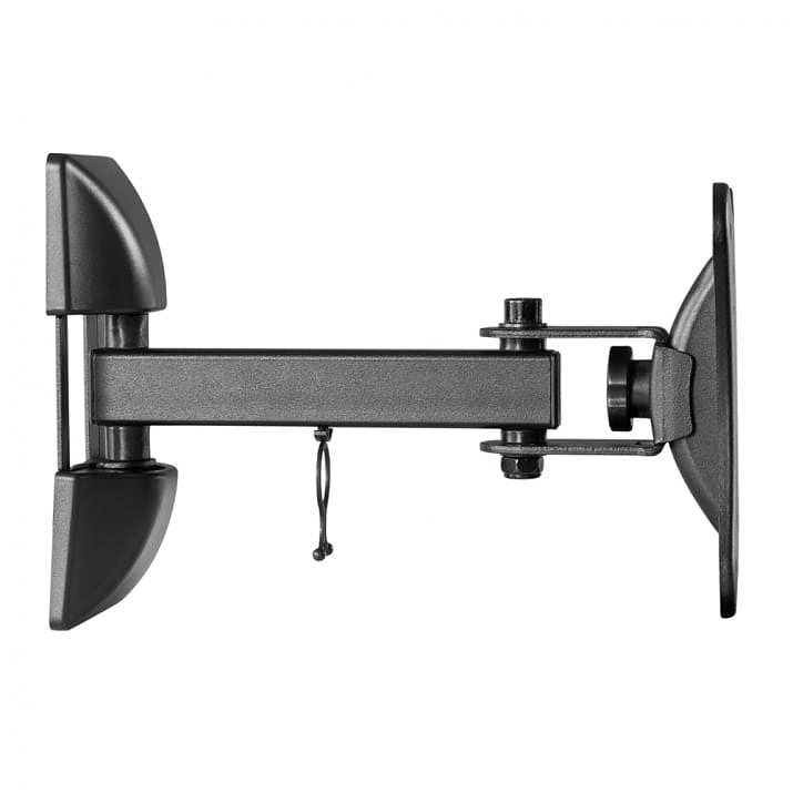 Практична и изключително лесна за монтаж TV стойка с възможност за издърпване, завъртане и накланяне. Тази универсална подвижност позволява да позиционирате така телевизора, че да получите перфектния ъгъл за гледане от всяка точка на стаята. Вградената скоба ще поддържа кабелите прибрани.