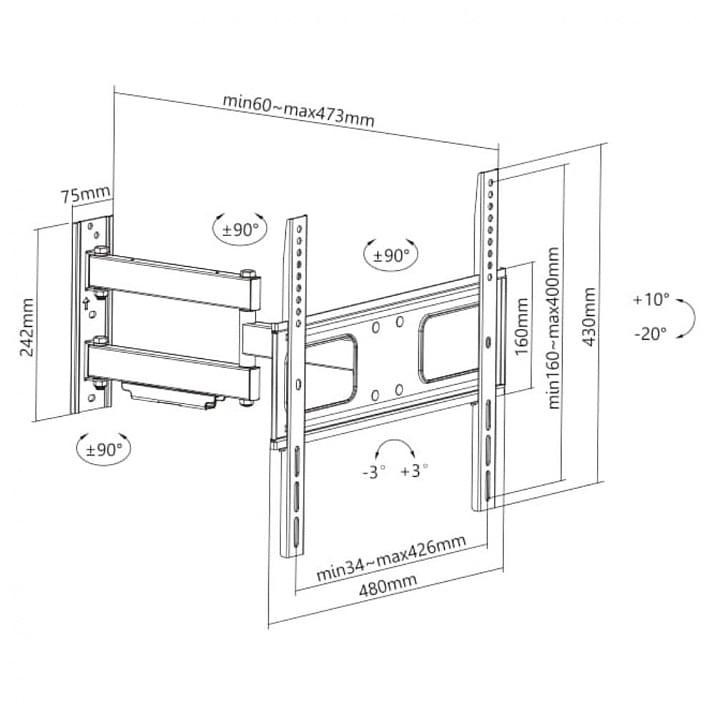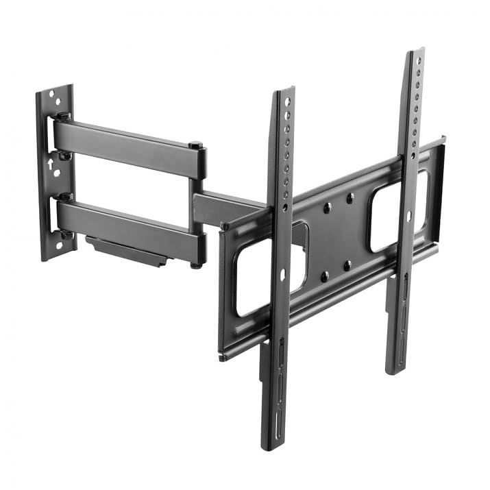 Практична и изключително лесна за монтаж TV стойка с възможност за издърпване, завъртане, накланяне и настройване нивото на екрана. Тази универсална подвижност позволява да позиционирате така телевизора, че да получите перфектния ъгъл за гледане от всяка точка на стаята. Вградени са скоби, които ще поддържат кабелите прибрани и защитени.