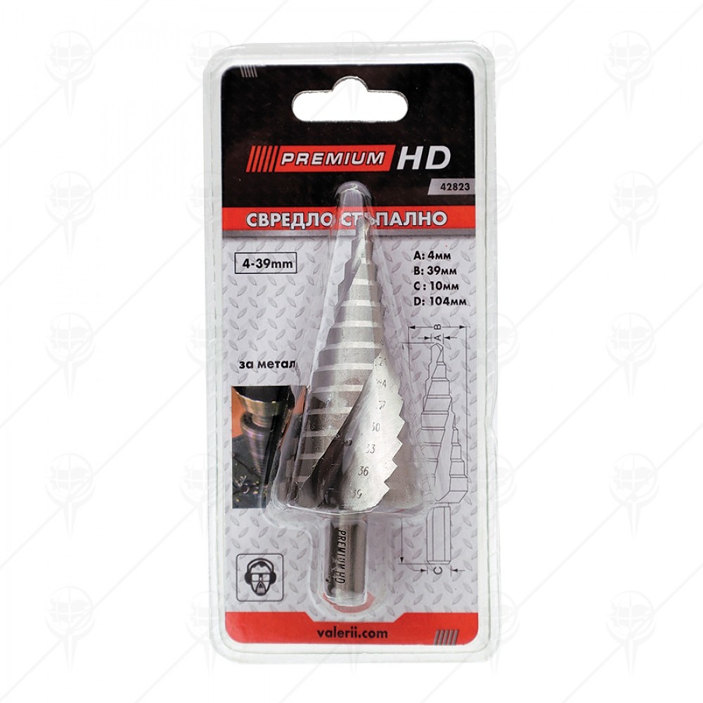 Свредло стъпално, изработено от стомана HSS по DIN4241. Размери от 4мм до 39мм.