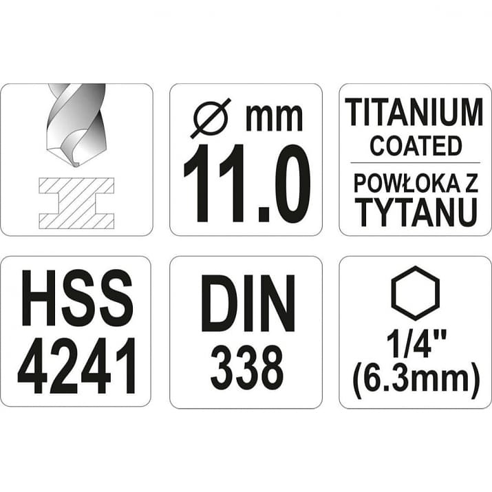 • Ръбовете на свредлото са шлифовани на 135 градуса. Те разсейват топлината бързо при пробиване в твърда стомана, без да изгарят свредлата.