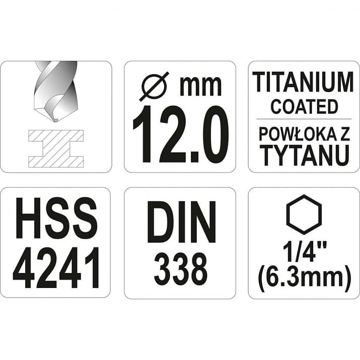 Свредло за метал с титаново покритие и шестостенен захват.