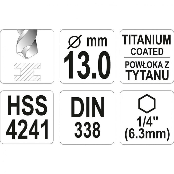 Свредло за метал с титаново покритие и шестостенен захват.