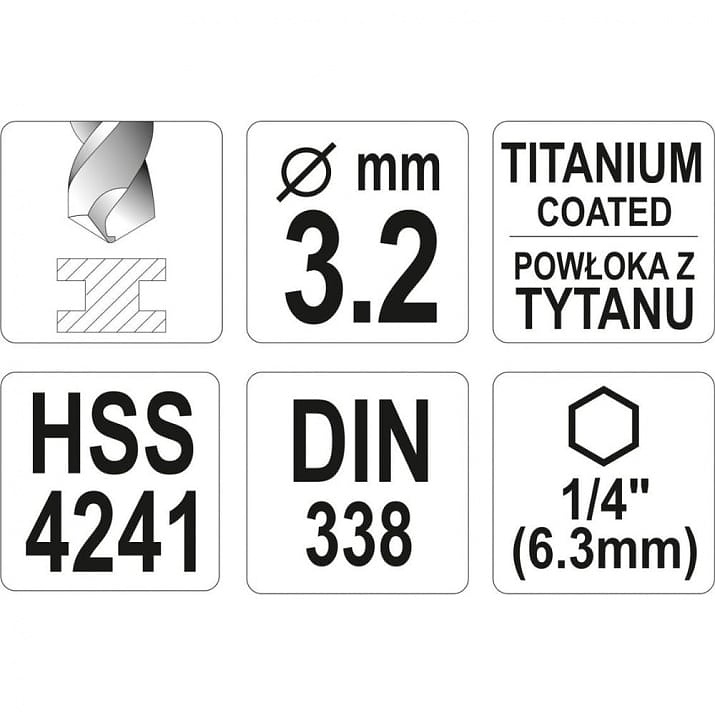 Свредло за метал с титаново покритие и шестостенен захват.
