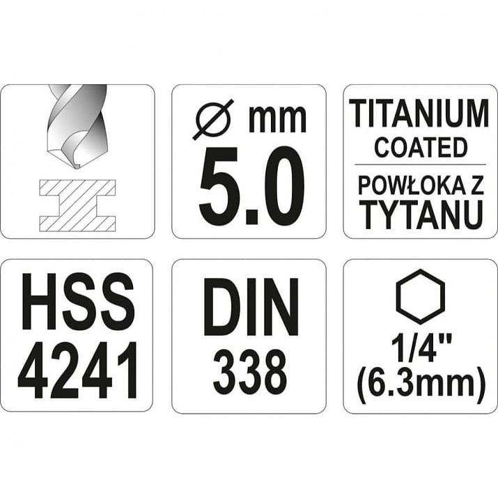 • Ръбовете на свредлото са шлифовани на 135 градуса. Те разсейват топлината бързо при пробиване в твърда стомана, без да изгарят свредлата.