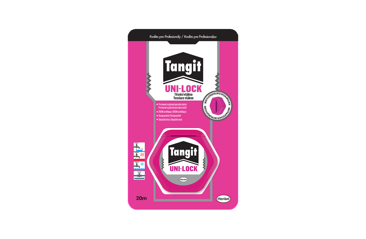 При студени и топли тръби за водоснабдяване до 130°C, както и тръби за газ. Конецът Uni-Lock е особено подходящ за резбови съединения, които изискват незабавно стягане след монтаж и може да се нуждаят от малки корекции преди употреба.
