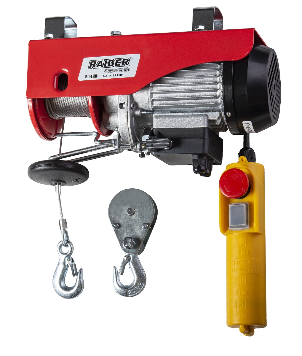 Raider Телфер електрически RD-EH01 Електрически телфер Raider RD-EH01 се характеризира с високо качество, ефективност и сигурност. С него можете да регулирате преместването на товара. Той може да се използва за повдигане на строителни материали и метални конструкции. Телферите са изключително гъвкави машини. Високата компактност го прави изключително лесен и удобен за ползване.