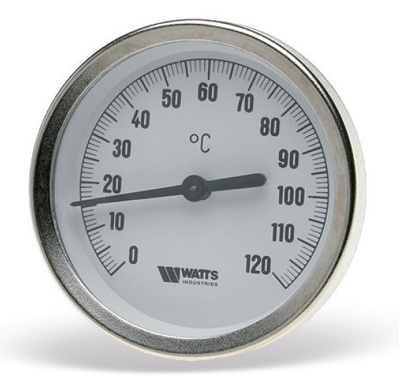 Биметалният термометър е пластина, изработена от два различни метала, притиснати един към друг, с различни коефициенти на линейно разширение, поставена в запечатан корпус. Когато температурата се промени, тази плоча се деформира и тази деформация е право пропорционална на промяната на температурата. Единият край на плочата е фиксиран, а другият край завърта оста на стрелата