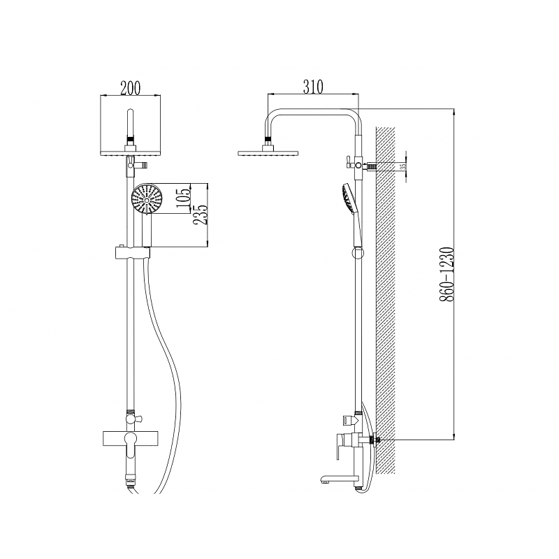 Тръбното окачване е изработено от неръждаема стомана SS201, с регулируема височина 76.6- 116 см.