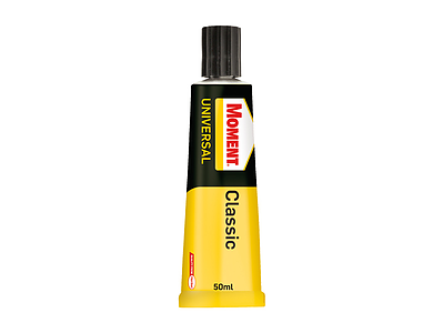 Използвайте върху сухи, чисти повърхности. Нанесете Moment Universal Classic с шпатула или четка с къс косъм. Преди да слепите частите, оставете разтворителят да се изпари за около 10-15 минути. Притискайте силно за няколко секунди. Оставете частите за 2 часа до напълно залепване.